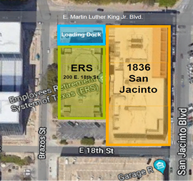 - Garage entry is located on E 18th Street between Brazos/San Jacinto